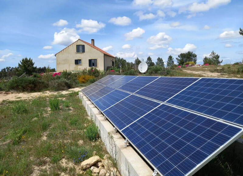 Es besteht ein Anschluss an das Stromnetz und eine Installation von 3,3-kW-Solarmodulen.